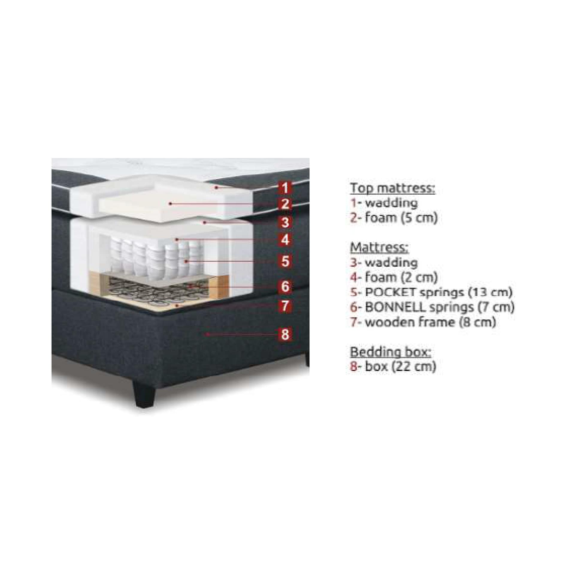 Förvaringssäng med pocket/bonell resår, fast eller medium.