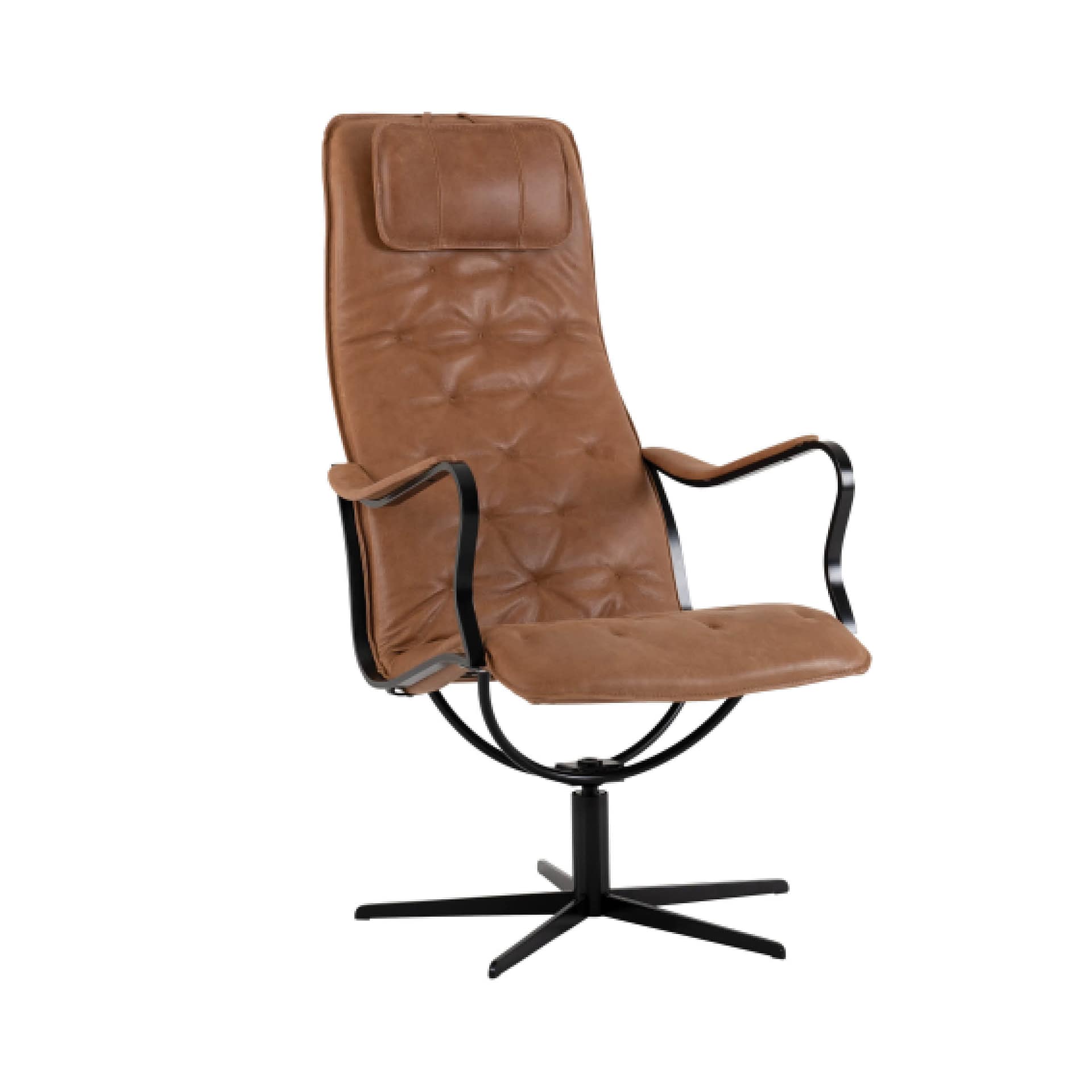Fåtölj Chic inklusive pall i läder vintage cognac