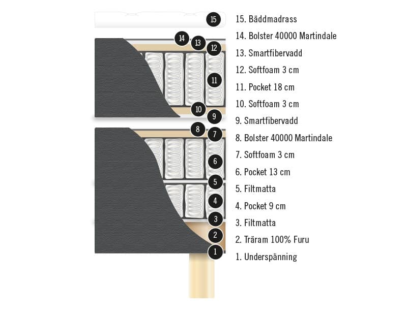 Exclusive continental 180cm säng med dubbla pocketresårer, hela 18cm pocket i övre resårdelen gör den extremt följsam. och till denna säng rekommenderas absolut Elites störtsköna Exclusive bäddmadrass!