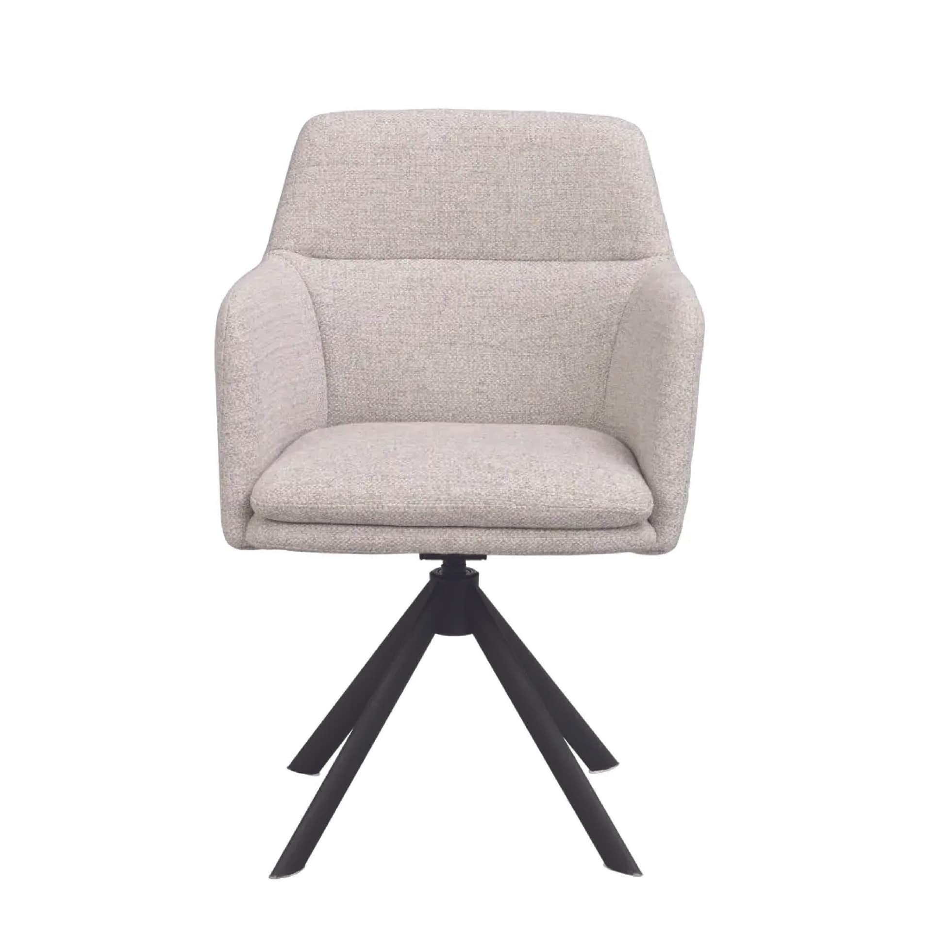 Gladstone karmstol med mörkbeige textil och metallunderrede .