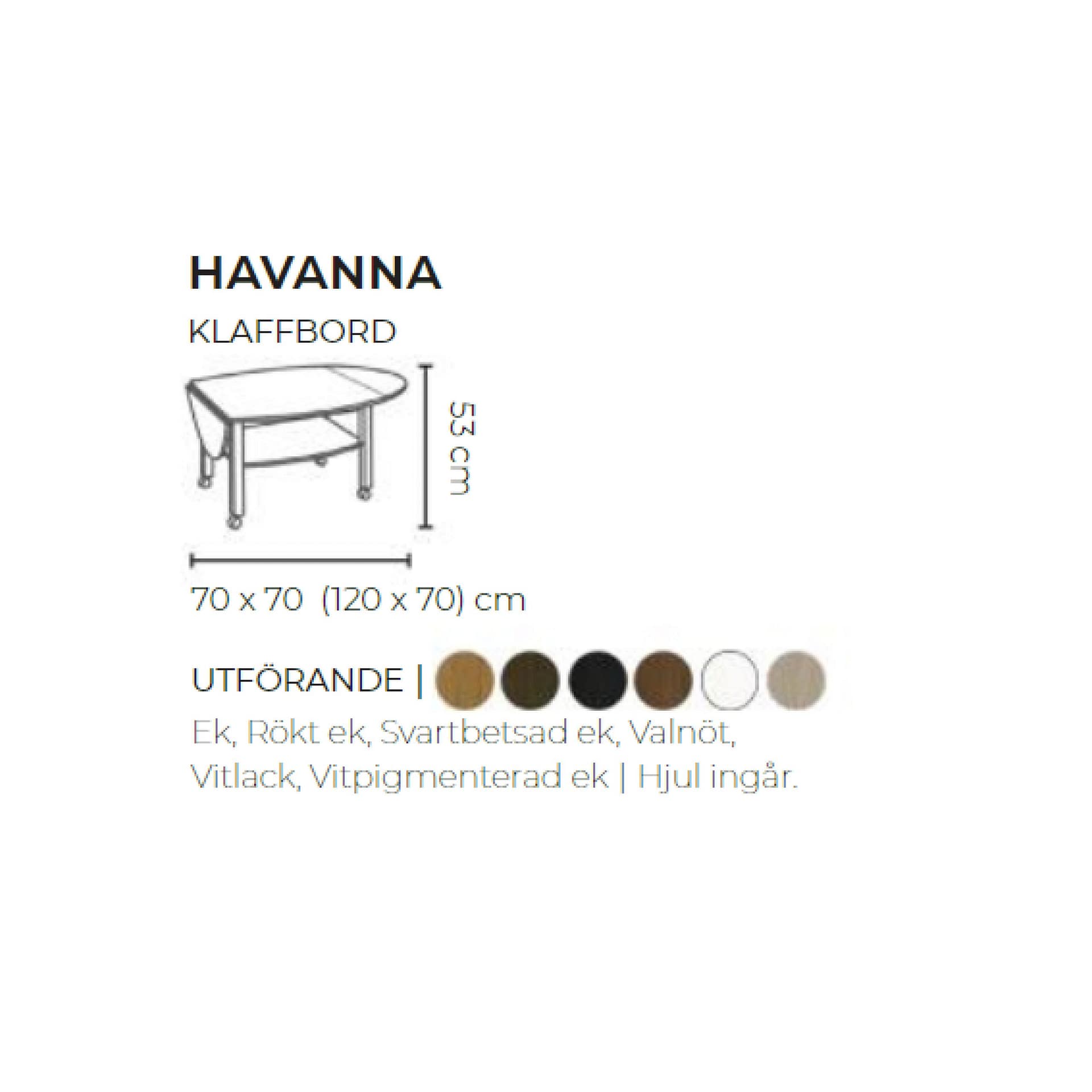 Soffbord havanna i ekfaner/massiv inkl. hjul