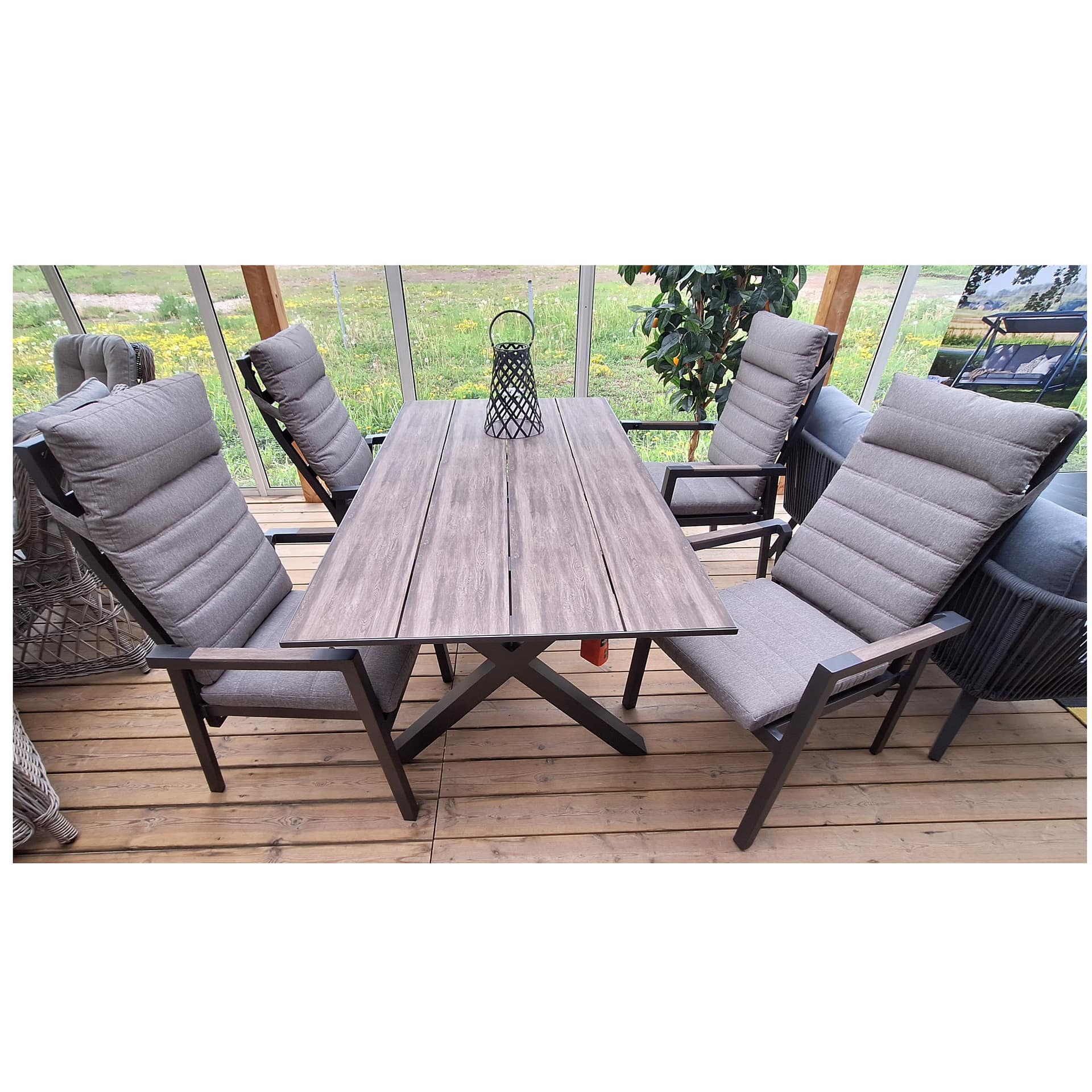 Manchester bord+stol i aluminium, bord-topp i aintwood.